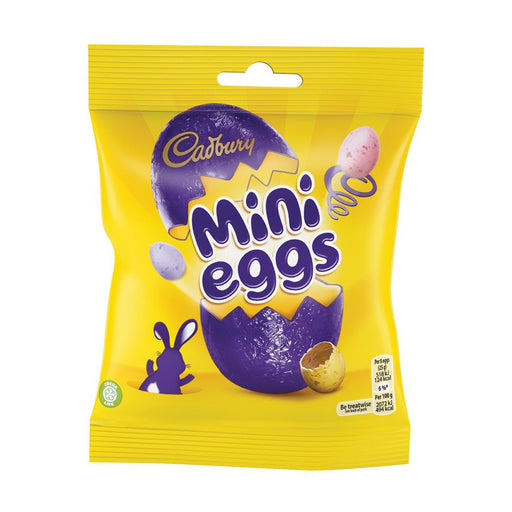 The nations favourite egg shaped chocolate! An irresistible bag of Cadbury Mini Eggs - Solid mini milk chocolate eggs in a crispy sugar shell! 74g...