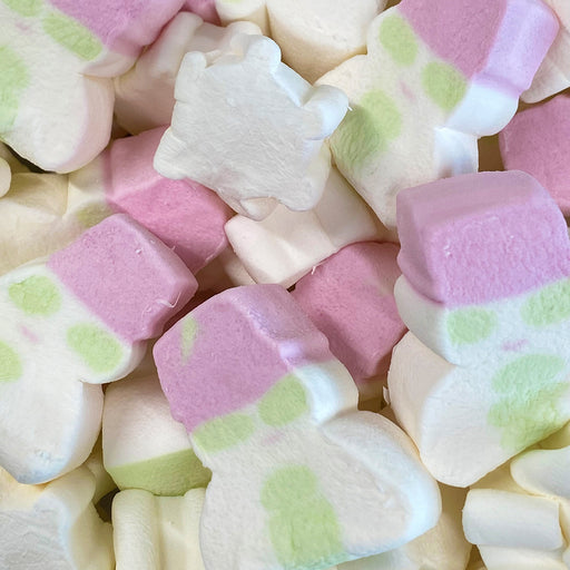 Vanilla flavoured mallows in the shape of Snowmen and Snowflakes. Perfect for the festive season! ~~~~~Glucose-fructose syrup, sugar, water, pork g...