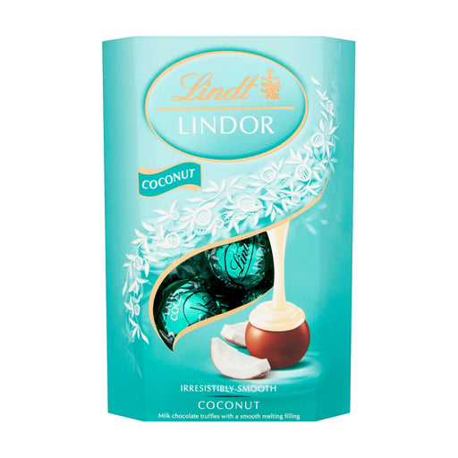 Discover our irresistible selection of tropical Lindor Coconut Milk Chocolate Truffles. Inside this pale blue box lies luxuriously smooth and delic...